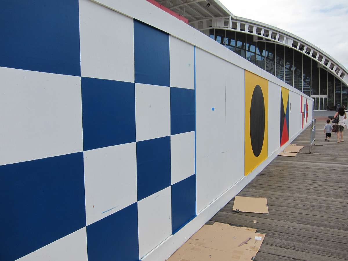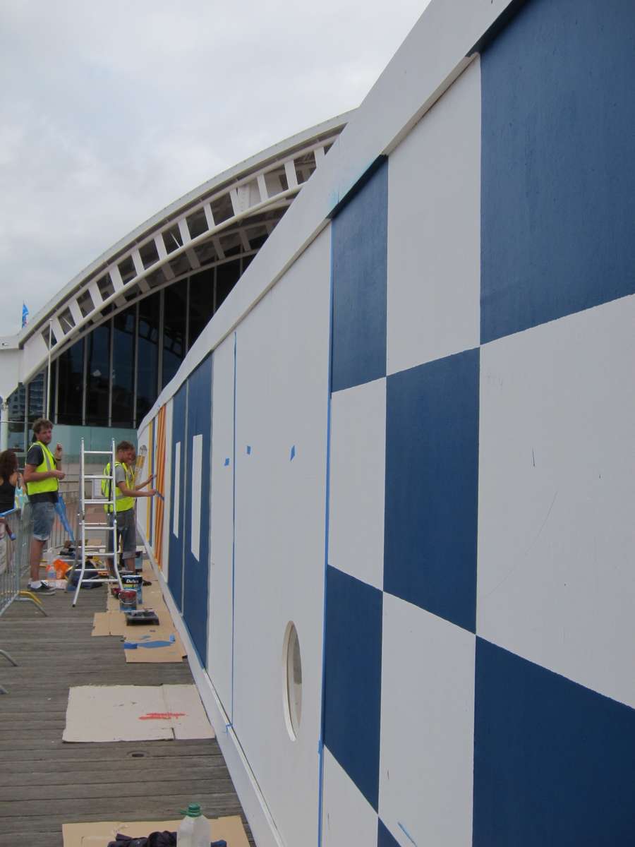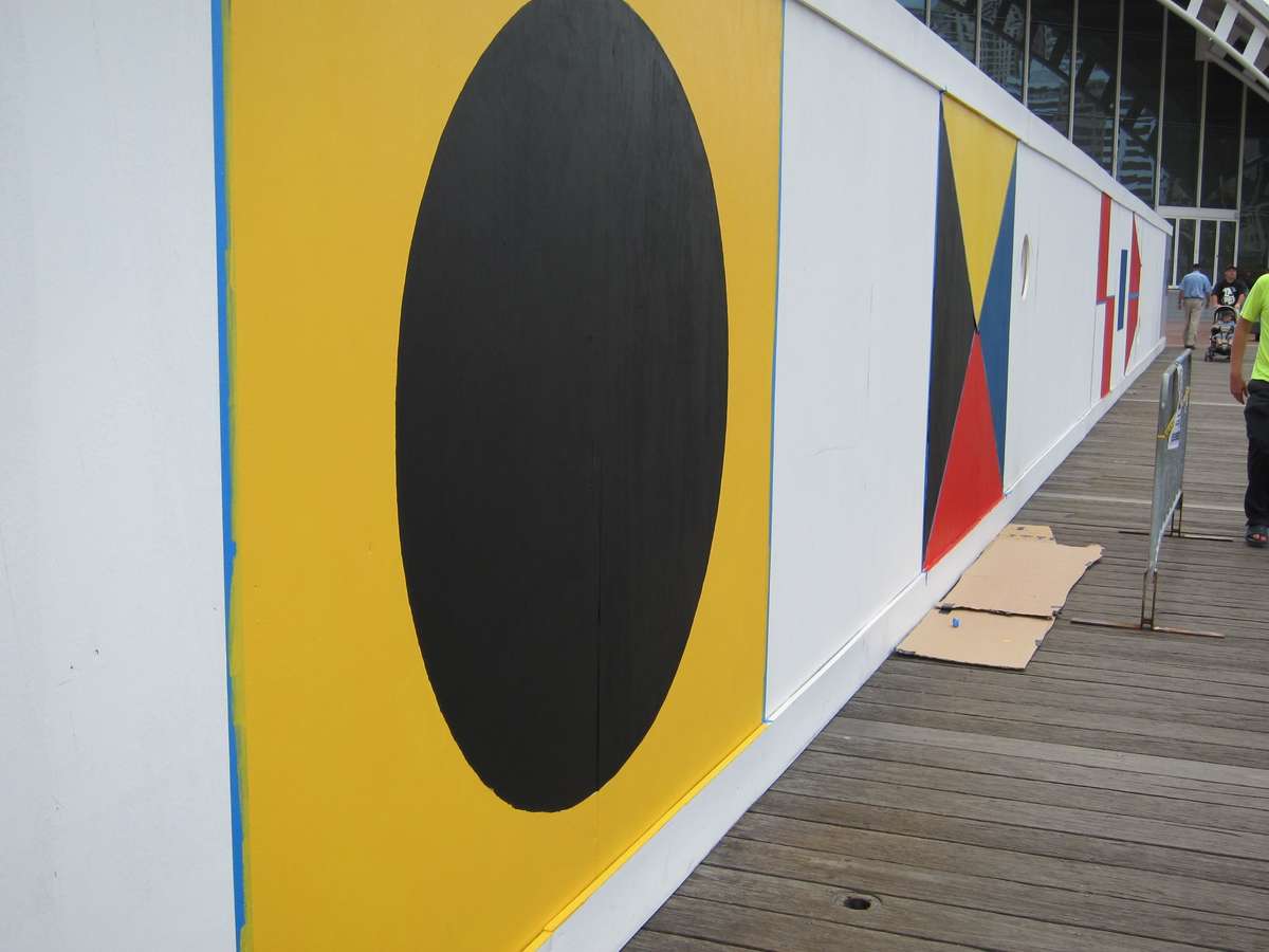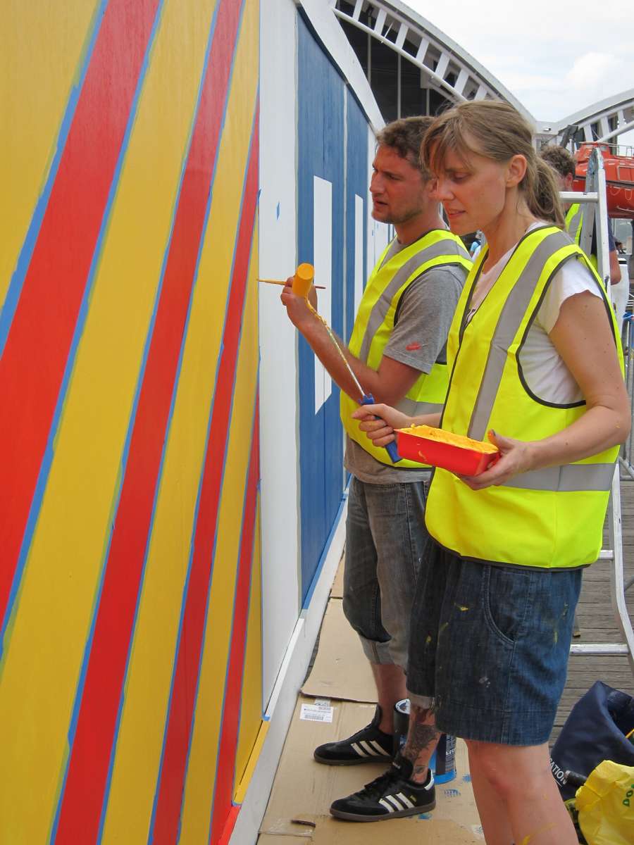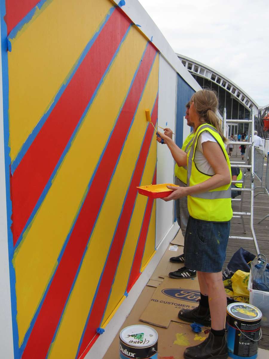 Our Stencil Art workshop starts next week. Here are some photos of the fantastic artists running the running Mini Graff & Jumbo installing the background of the mural that participants will be working on.