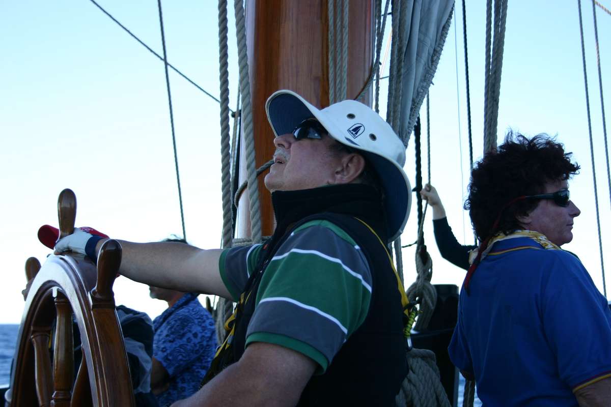 flare witnessed was an orange/white rocket flare and then approx. 15 minutes later a 2nd white rocket flare was witnessed, this time by several more of the crew on watch including Captain Ross. We are currently 130 NM offshore. All the crew muster at their life rafts to number off (ensure everyone is on deck) and then it is time to lose all sails as soon as possible. This is done outstandingly considering most of the crew is still half asleep. The engine is started and we put out a message on the VHF to any nearby vessels to alert them of what we have seen. We get a response back from a container ship, which then come to assist in searching the area with us. The RCC is notified of the sightings and all the details are given. We searched the area for several hours but don’t find anything.