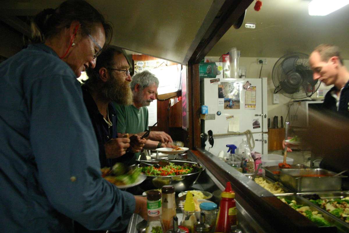 At 0700 there is a call for anyone interested in seeing where the Endeavour reef is to come on deck as we are about to sail past it. The only thing that is visible is the wave breakers on the reef.