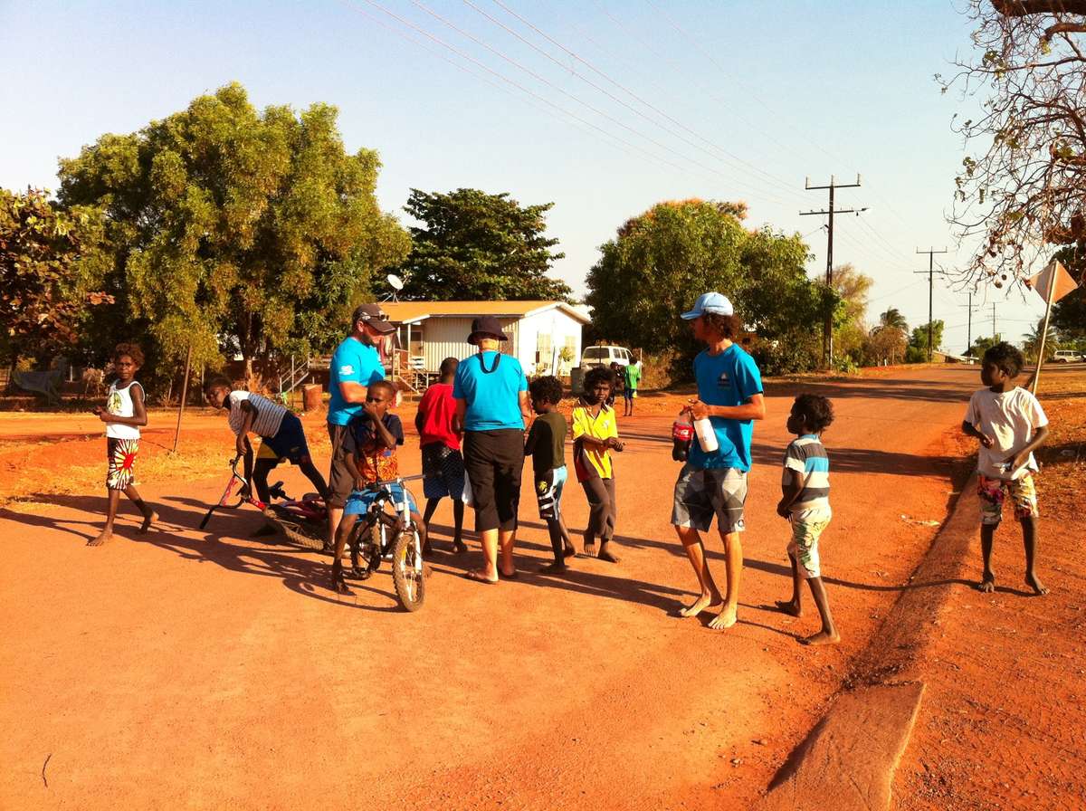 When we first arrived 40 of the school children were down at the beach waving. Once we had finished furling the sails, we launched the rescue boat and sent Ross and Patrick ashore to meet Mary, one of the traditional owners and seek approval for the rest of the crew to come ashore.