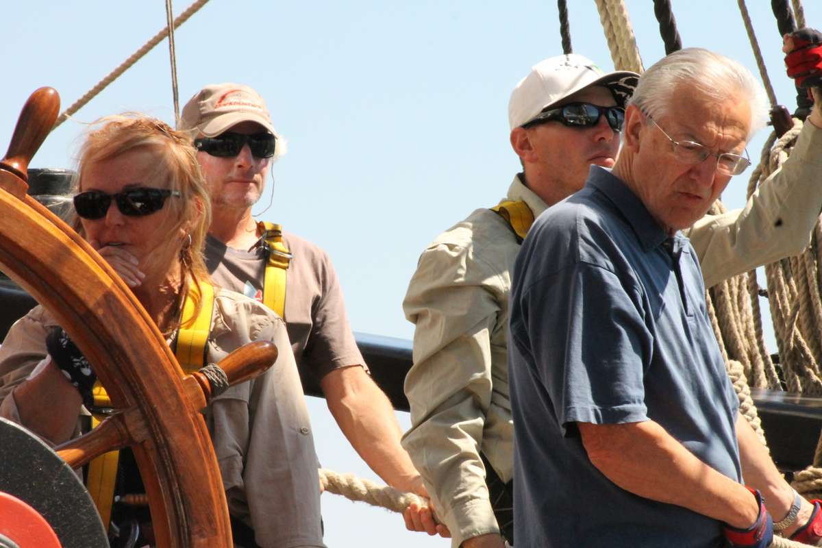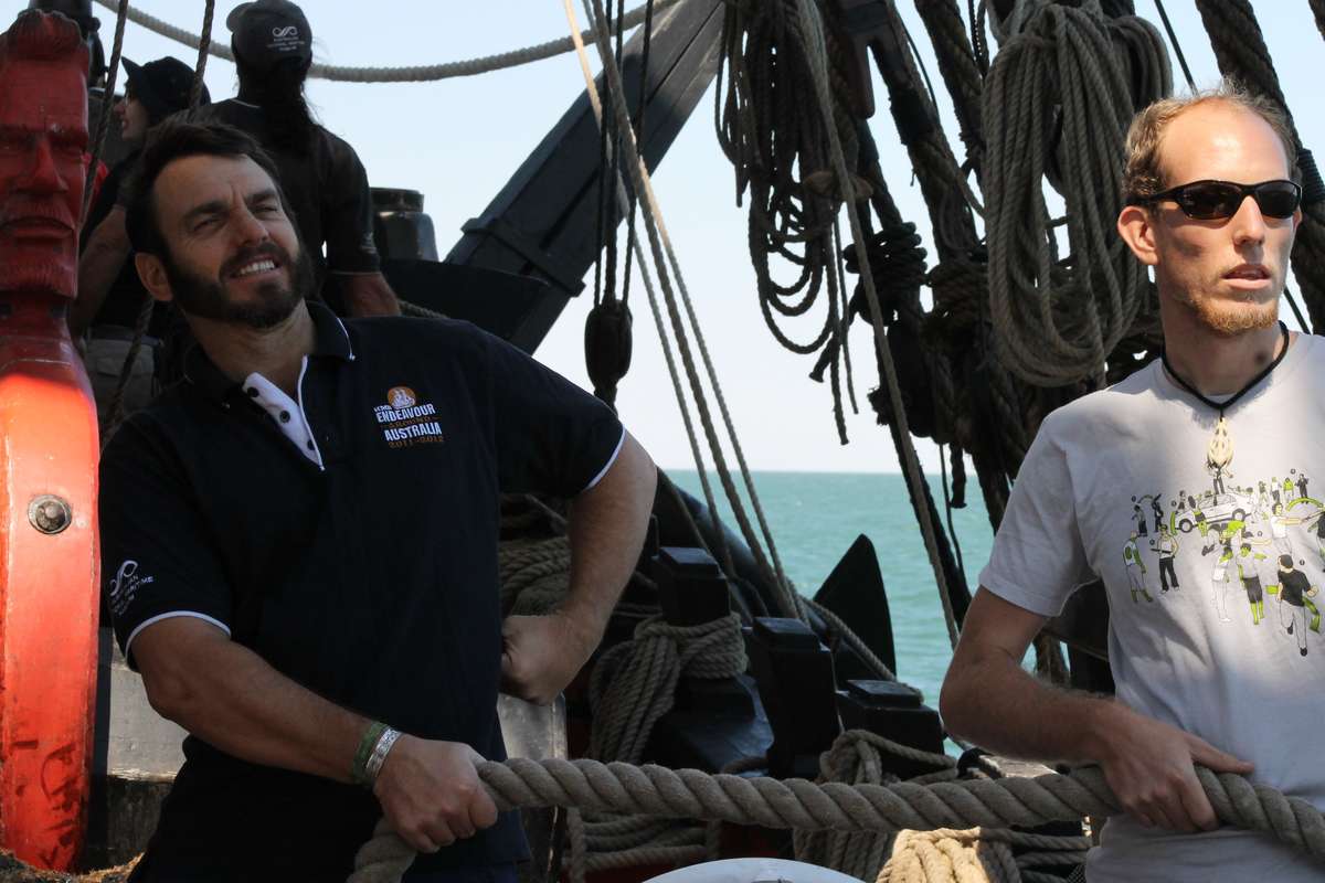 Most are then stood down as we sail away from Exmouth but those that are still revelling in completing the tack put their harnesses on and go aloft to loose the Fore and Main Topgallants. The plan is to now sail back out to Serrurier Island where we will go ashore and explore tomorrow. At 1600 all hands are called back on deck as we need to put in another tack to enable a clear course to sail out of the bay.