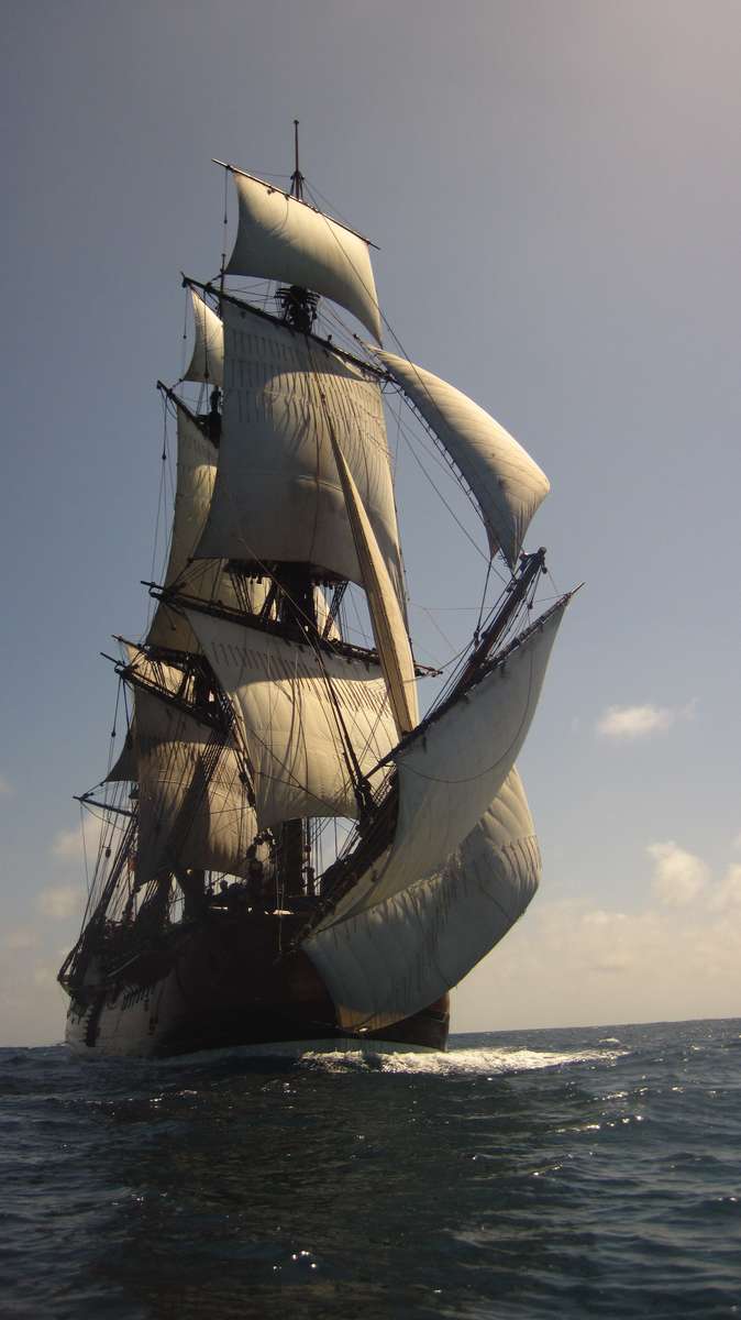 After the “Photo shoot” once Michelle and the steward had boarded again and the boat was lifted and secured back into place, the Captain thought it was the perfect opportunity to wear and tack the ship. To wear, the ship turns direction with the wind behind the ship at all times, it is like gybing on a modern yacht, but tacking is a lot more complicated due to the ship having to turn all the way into the wind, adjusting all the yards and sails at just the precise moment…..you could hear the creaks of the ship as everyone held their breath and whispered encouragement’s!….yes, we did tack and why? Because we can!