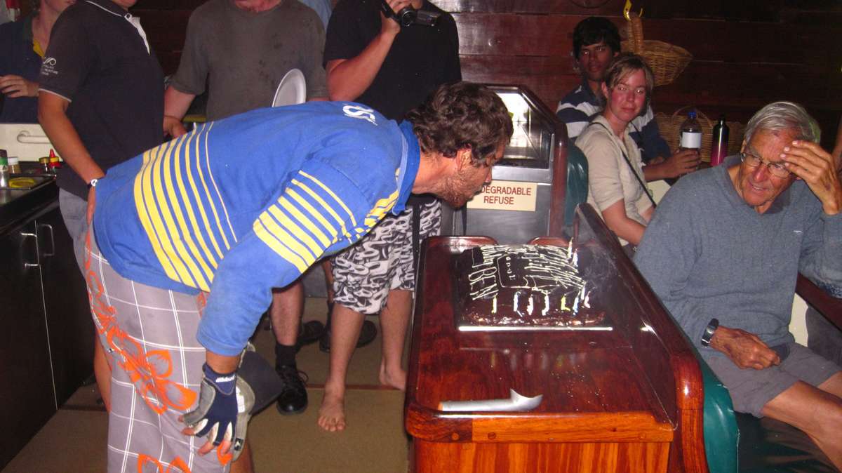 In the evening, in between the two sittings of dinner, there was the celebration for Ben’s Birthday. Our catering officer Nigel had a massive chocolate cake prepared earlier filled with jam and cream. We had all the watches gather downstairs before Ben walked down the companion way to the 20th. All the lights were turned out and candles were lit, Ben made his way downstairs and just as he made it to the last step the entire crew burst into song and sung “Happy Birthday”. After the cheers and he cut the cake, all went back to normal and they all went back to their watches and the duties they were assigned to.
