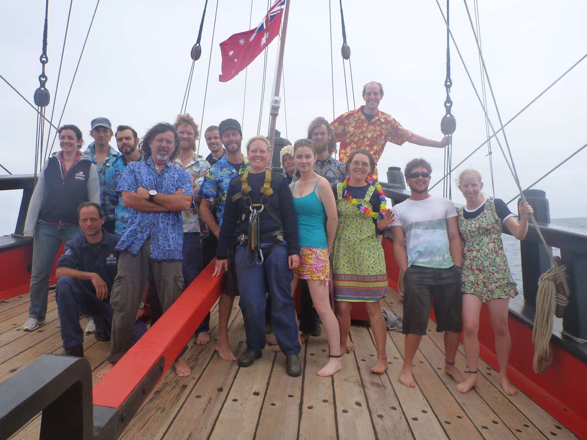 During the night the ship sailed calmly over an invisible border suddenly changing the time and of course, changing the state!!! HMB Endeavour is now in South Australia!! And conveniently enough around the same time, we also sailed to 40⁰ Latitude, so we are also in the roaring forties! As a small tradition of the professional crew, everyone dressed accordingly for the celebration of entering a new state….