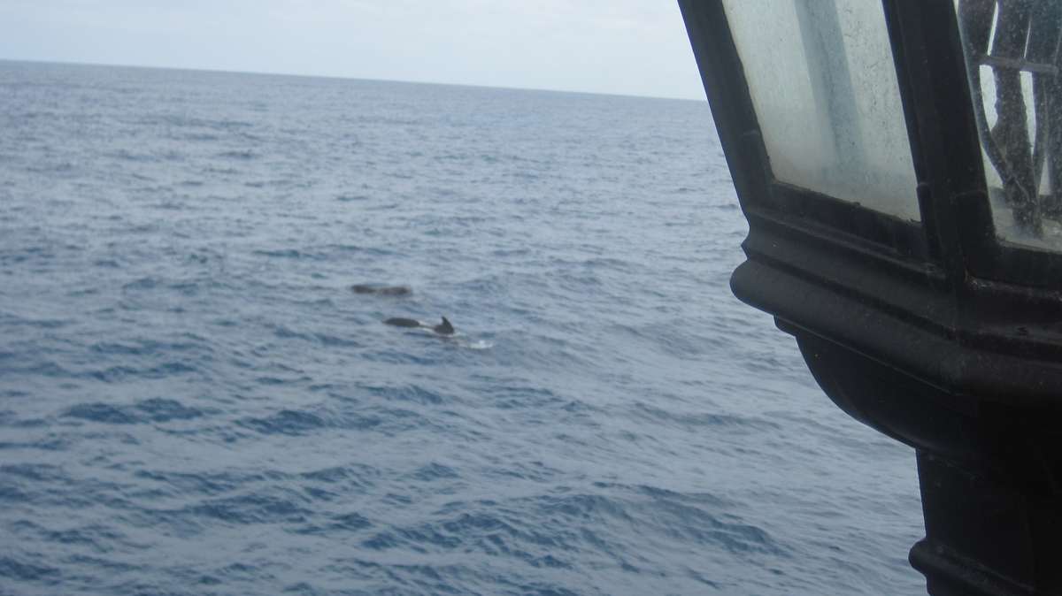 During the morning of the 29th while many of the voyage crew were just relaxing in the 18th century deck after happy hour, all hands were called up on deck. Not for the normal reason to hand sails, but all were told to bring their cameras up on deck to capture some photos of the pod of pilot whales that were visible in the distance. As more crew emerged from below the whales slowly began to swim closer to the ship and soon enough were playfully swimming through the small wake that the Endeavour was creating as she sailed. Many of the voyage crew took photos of the pod of pilot whales, there was at least 15 in the pod including some smaller calves swimming with their mothers.