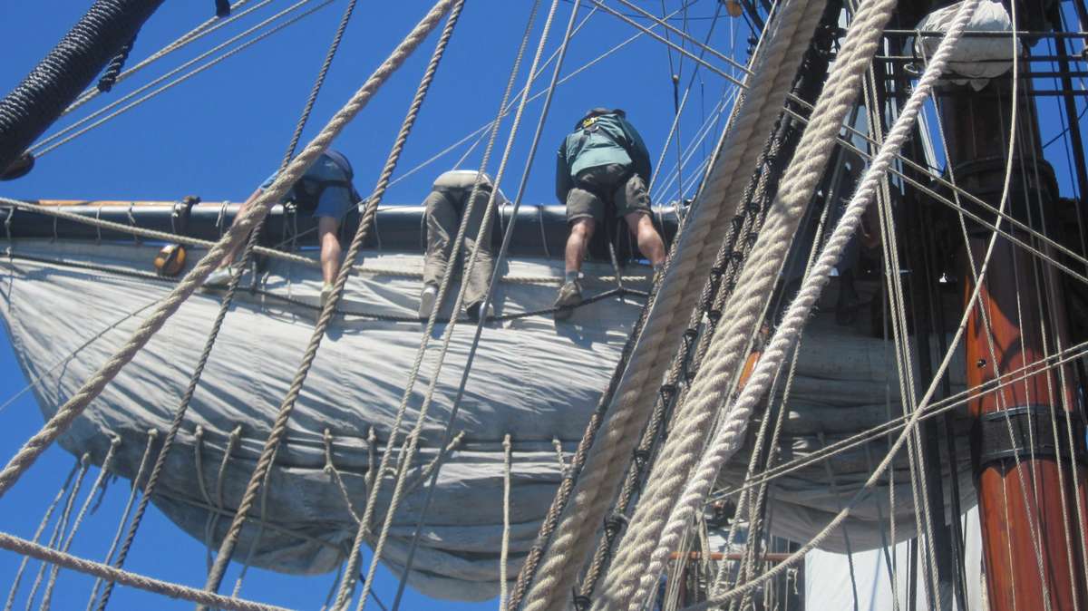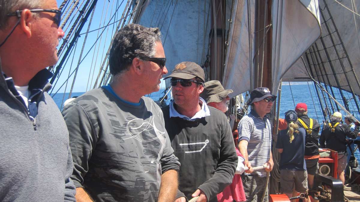 Hello again and welcome to day 3 of our voyage from Port Lincoln to Adelaide!! The last 24 hours have been absolute bliss for the entire crew, which if I have re-read my last posts correctly; the entire voyage has been magical so far with perfect conditions and sunny weather!! In the afternoon of the 11th the crew got to working setting their first sails for the voyage, using their newly learned line handling skills to set the staysails and later in the evening one of the watches was up on the Main Course yard, unfurling the Main course making sure it was ready to be set later on.