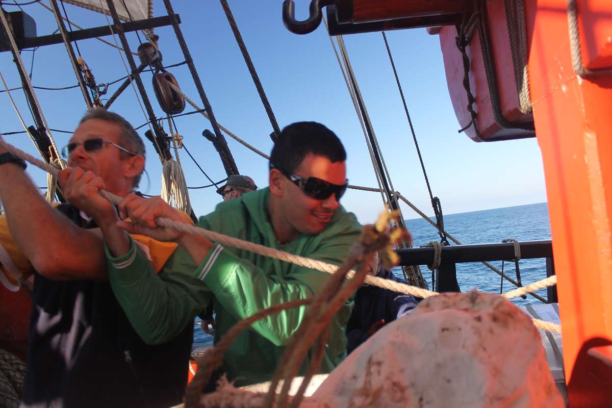 Just before lunch it is great to see our nervous climbers attempt to climb again. Mark and Eddy go aloft and then assist Kin, Kerry and Kath up the Mizzen mast. There is nothing that makes our jobs more rewarding than seeing the voyage crew meet their goals and achievements on board and I think the smiles and cheers all round on the deck, is a sure enough recognition of this.