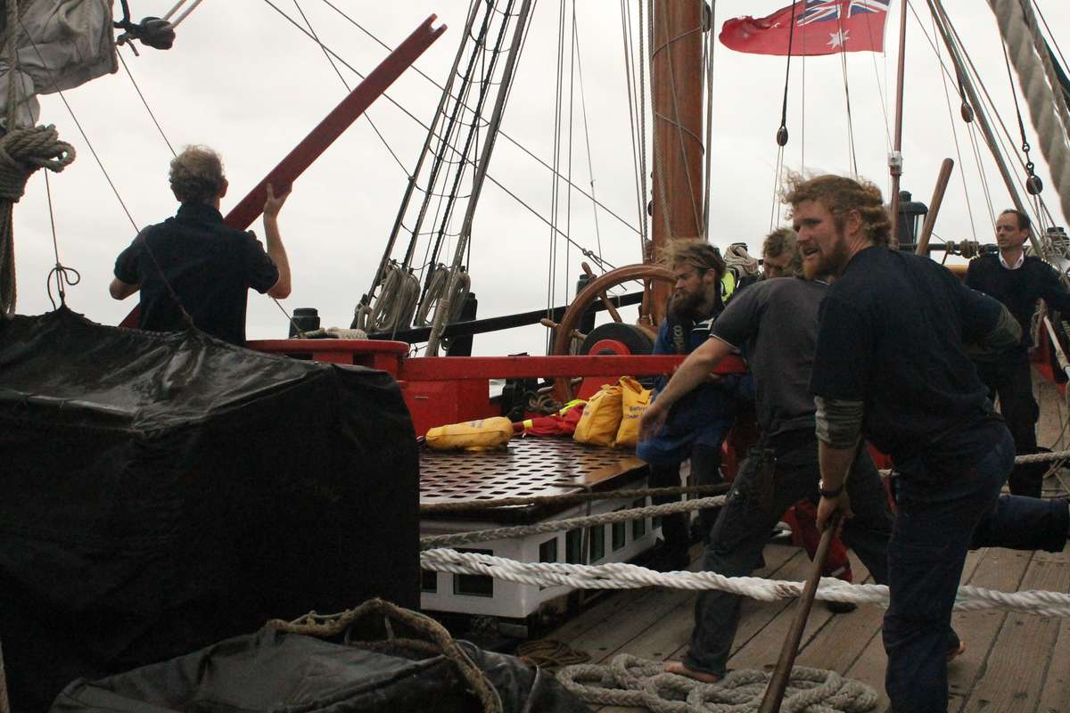 The rain starts heavy but gets heavier and heavier to the point it is hard to see from the impact of the heavy drops on your face. We have some assistance from a lines boat to take the bow line ashore from there it is a case of very carefully judging the wind strength as we try and swing her port side into the wind and to gently sit on the wharf. It is much easier said than done, but it is well judged and done the less. The weight and pressure of the ship breaks the stern bollard freeing the stern line which is thankfully quickly rectified. It takes the crew a good hour of slowly tightening the lines to get the ship safe, but it will take us much longer to make sure she is safe and secure for the duration. It is time for us to say goodbye to our crew and although it has only be a five day voyage it just goes to prove that you shouldn’t underestimate the sense of adventure that can be had in a short period of time. Fair winds
