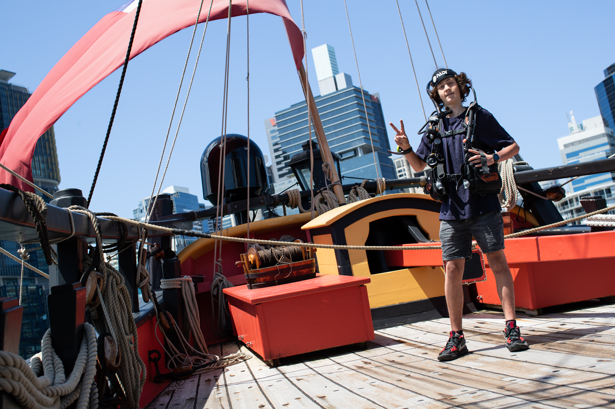 As luck would have it, one of the kids did have an interest: Leo, the 12-year-old son of a marine scientist at the University of New South Wales who has long been fascinated by the ocean, as well as maritime history and archaeology. Kieran and I arranged for Leo to visit the museum, where we showed him maritime archaeology-themed exhibits (such as the Endeavour cannon and HMS Sirius anchor in the Navy Gallery) and took him aboard the Endeavour replica. The visit also provided Anthony and Nathan an opportunity to collect footage and conduct interviews for Leo’s Aliquam 3 episode. During the shoot, we were joined by Heather Berry, a maritime archaeological conservator from the Silentworld Foundation who chatted with Leo about conservation of artefacts recovered from marine environments. She too was interviewed for the Aliquam episode and provided insight about this critical, but frequently unacknowledged, aspect of preserving underwater cultural heritage.